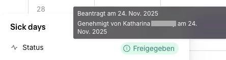 Sobald hier Freigegeben steht, siehst Du auch, wann die Abwesenheit im letzten Schritt genehmigt wurde: