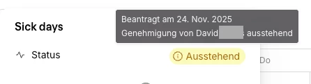 du siehst in der Abwesenheitsperiode, wenn Du beim Status über das Ausstehend bzw. Freigegeben hoverst, das Datum, wann die Abwesenheit beantragt wurde.