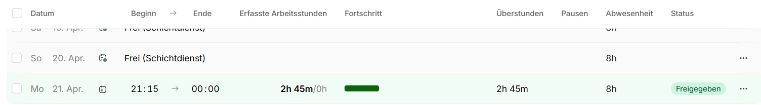 wir haben bei uns Mitarbeiter, die in der Schicht arbeiten und somit auch mal an einem Feiertag eingeplant sind. Wenn an einem Feiertag gearbeitet wird, werden die Stunden als Überstunden gewertet, welches aber nicht korrekt ist. (In dem Bsp. unten müssten eigentlich Minusstunden entstehen, da keine 8 Stunden gearbeitet wurden)