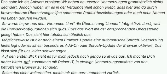 hat noch jemand das Problem, dass seit dem Update die Anzeigenamen der individuell angelegten Abwesenheiten nicht mehr passen? In den Einstellungen ist alles korrekt (in meinem Fall “Krankheit ohne AU”) eingegeben, aber es wird etwas ganz anderes angezeigt (“Sterben ohne AU”).