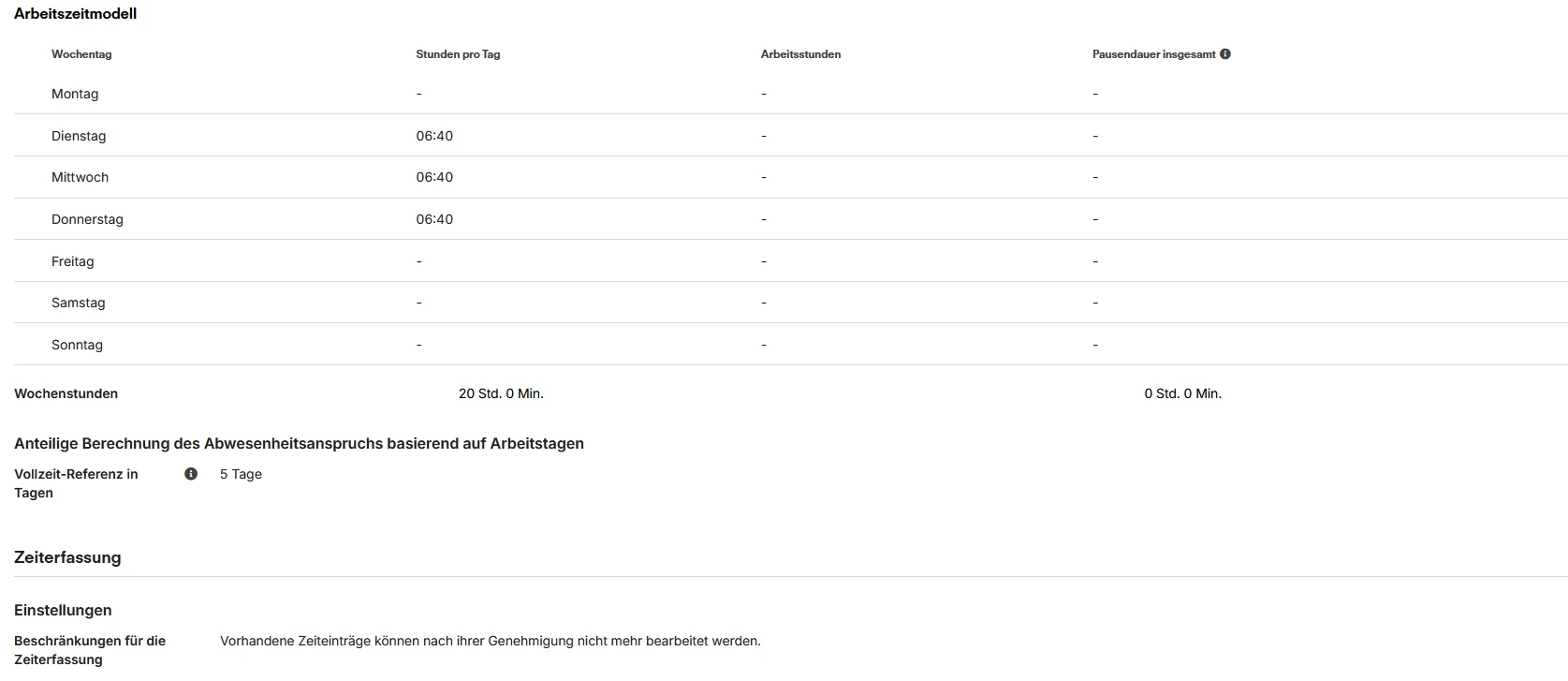 Frage1: Teile ich die 20h auf alle 5 Arbeitstage auf, die er arbeiten kommen könnte oder muss ich es für 3 Tage hinterlegen? Er will wahrscheinlich 3 Tage pro Woche kommen, aber wir haben noch keine festen Tage und es soll auch erst einmal flexibel bleiben.