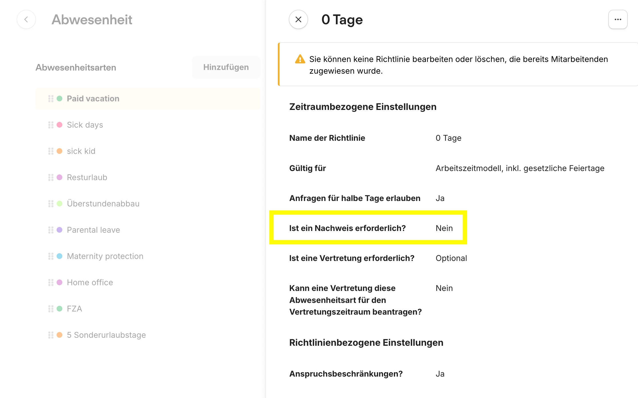 Ich kann nur den Namen, die ID, Kalenderfarbe, Kategorie und Soll-/Überstunden bearbeiten. Mir wird gar nichts bezüglich der Attest-Abgabe angezeigt. Woran liegt das und kann ich das trotzdem anpassen?
