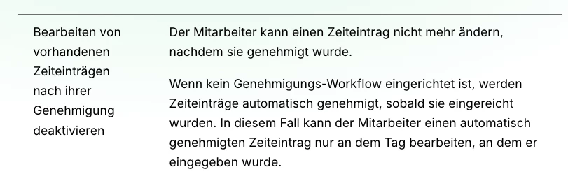 Hallo, wir sind gerade in der Endphase des Einrichtungsprozesses von Personio. Ein Kriterium für unsere Entscheidung für Personio war, dass man das nächträgliche Ändern und/oder Erfassen von Zeiten ausschalten kann. Beim Testen fiel mir jetzt aber auf, dass es zwar die Häkchen in den Arbeitszeitmodellen gibt, aber das trotzdem gemacht werden kann.