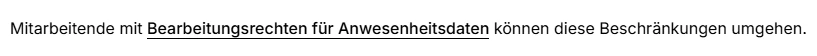 Anpassung der Zugriffsberechtigungen und dait ein Genehmigungsprozess für alle Anwesenheiten ist dabei keine Option für uns.
