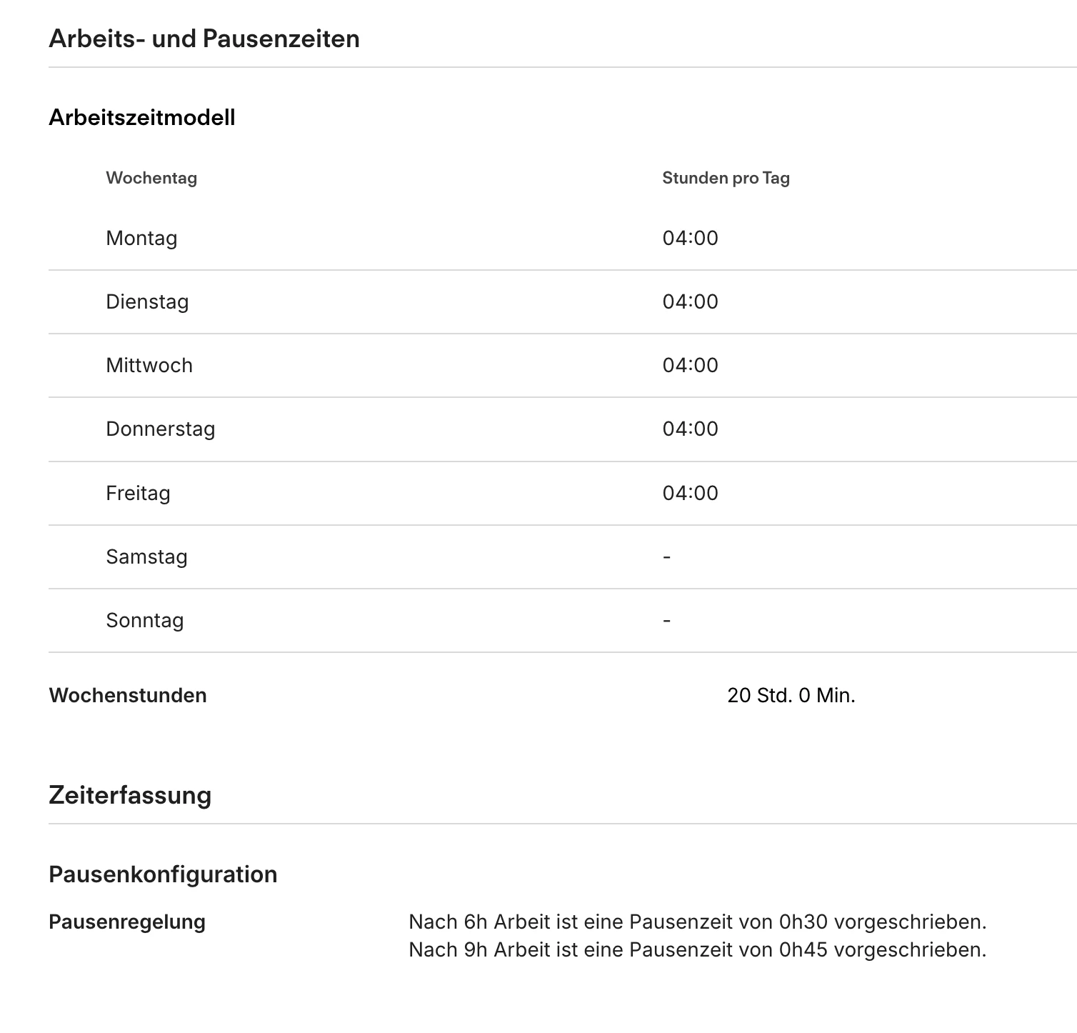 Auch wenn wir einiges zu den Arbeitszeitmodellen und der Zeiterfassung bei Personio gelesen haben, bitten wir um Eure Mithilfe/Info, wie wir das Arbeitszeitmodell von Werkstudenten am besten einrichten.