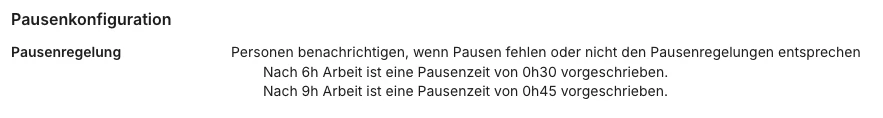 Ein automatischer Hinweis, ob die Pause lang genug war (z. B. bei mehr als 6 Stunden Arbeitszeit).