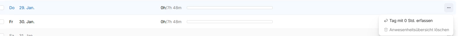 Nachteil: die Mitarbeiter haben zwei Bereiche zu pflegen. Die Abwesenheit zur Beantragung des Tages und die Anwesenheit für den Zeitabbau.