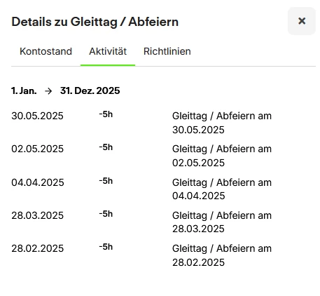 wir haben seit einigen Wochen das Problem, dass nur bei einigen Mitarbeitenden, wenn sie einen Gleittag beantragen die Stunden nicht von den Überstunden abgezogen werden, obwohl in der Aktivität unter > Abwesenheit > Abwesenheitsart > Gleittag die Minustunden angezeigt werden. Ich muss dann manuell die Überstunden im Überstundenkonto abziehen. Das betrifft aber nur einige Mitarbeitende, ebi anderen funktioniert ist problemlos. Bei den betroffenen Mitarbeitenden funktioniert es auch, dass Minusstudnen abzogen werden, wenn man an einem Tag kürzer arbeitet.