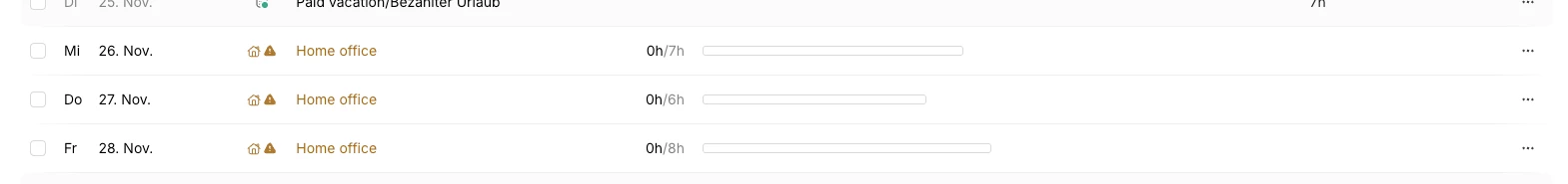 • An drei Tagen im November 2025 wurde Home Office eingetragen: