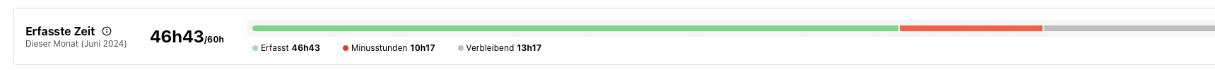 Am Ende des Monats ist dann entweder die erfasste Zeit höher als das Monatsziel und es stehen Überstunden dran oder die erfasste Zeit ist weniger als das Monatsziel und es stehen die Minusstunden mit dabei = verbleibende Stunden.