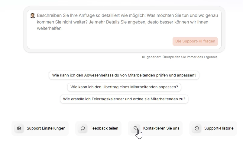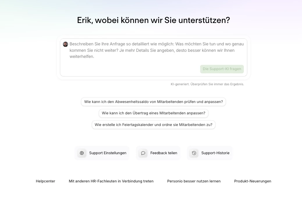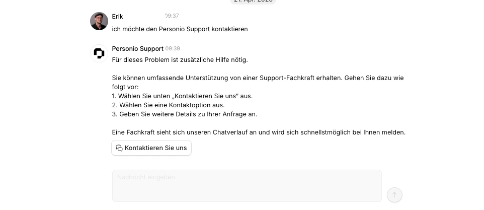 über Personio kann ich an den Support anscheinend keine direkten Anfragen mehr stellen (habt ihr das abgestellt?), nur an den KI Support?