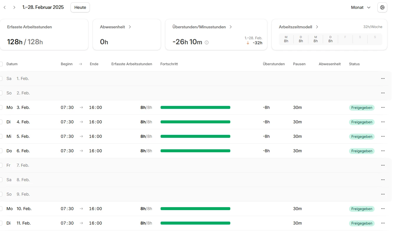 Ansonsten würde ich dir raten dich an den Support zu wenden. Bei uns sind auch immer mal wieder Zeiteinträge verschwunden und ein paar Tage später sind sie wieder da. Ich vermute einen Bug oder ein Fehler, wenn personio irgendwelche Änderungen einspielt.