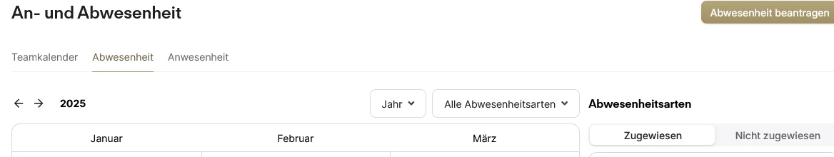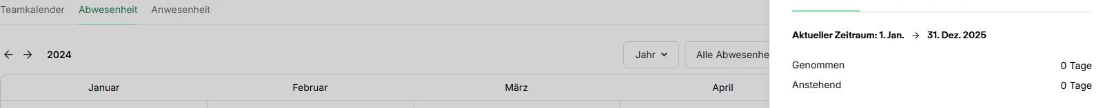 Derzeit können sie zwar durch den Kalender blättern, aber eine richtige Zusammenfassung (z. B. mit Anzahl der Tage je Abwesenheitsart) ist darüber nicht mehr ersichtlich und daher wenig zielführend.