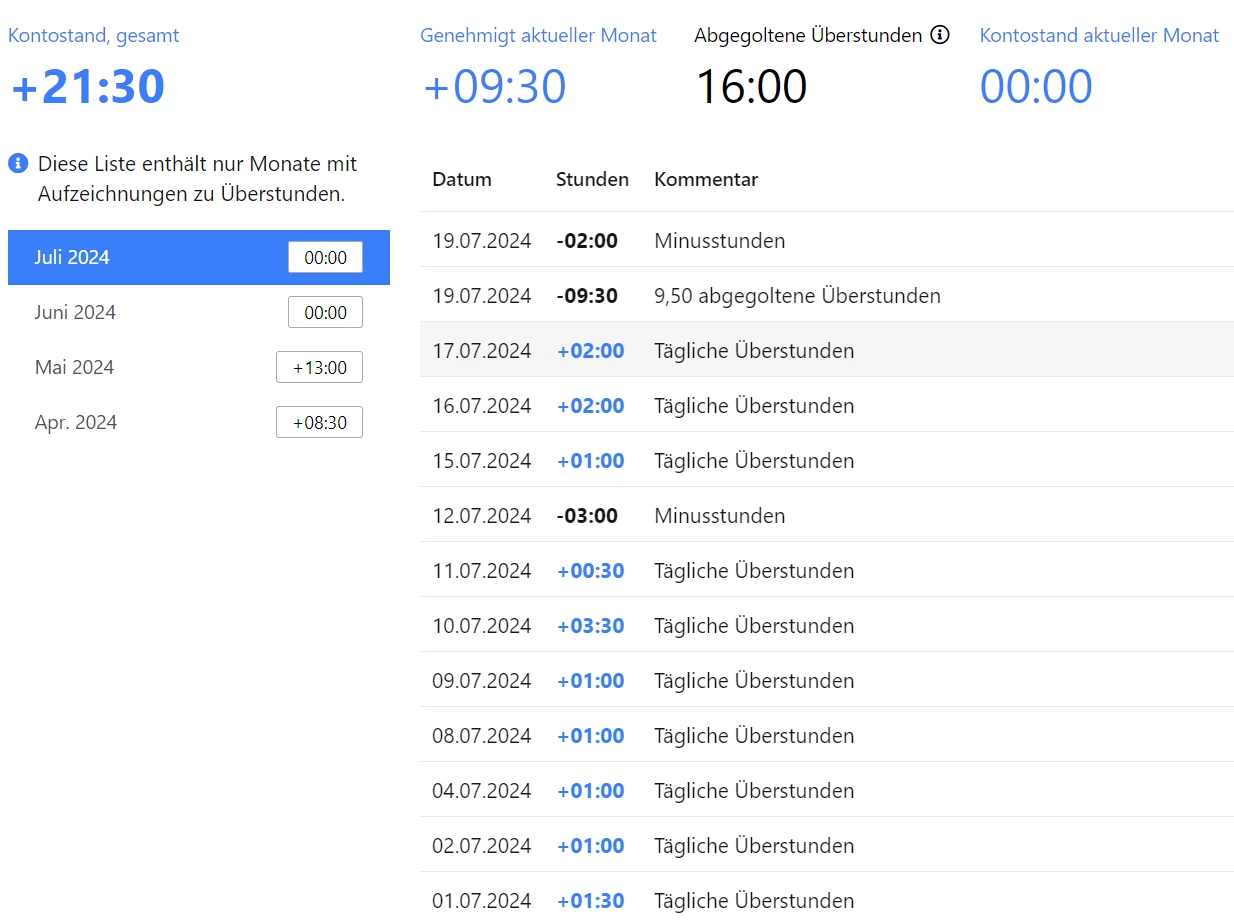 Überstunden Mitte des Monats abgegolten