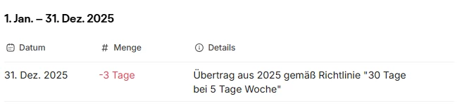 Wenn ich in der Abwesenheit auf Urlaub und dann Aktivität gehe, sehe ich nur den gesetzlichen Anspruch für das Jahr 2025, aber nicht die Summe der Resturlaubstage aus 2024.