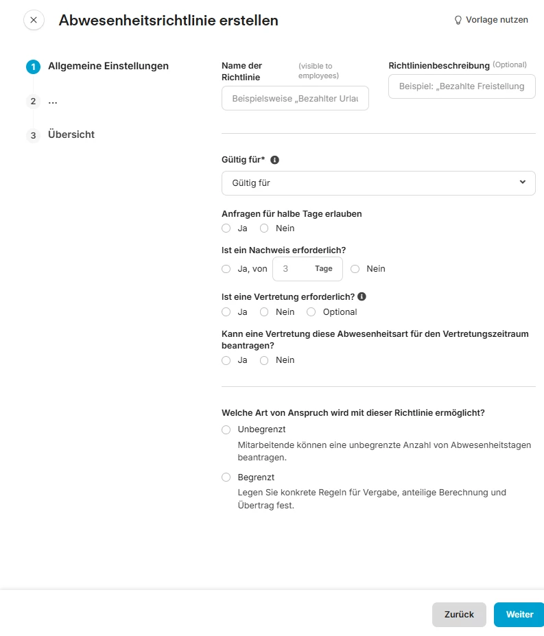 für Abwesenheiten müssen seit geraumer Zeit Richtlinien hinterlegt werden. In den Richtlinien kannst du genau diese Dinge definieren.