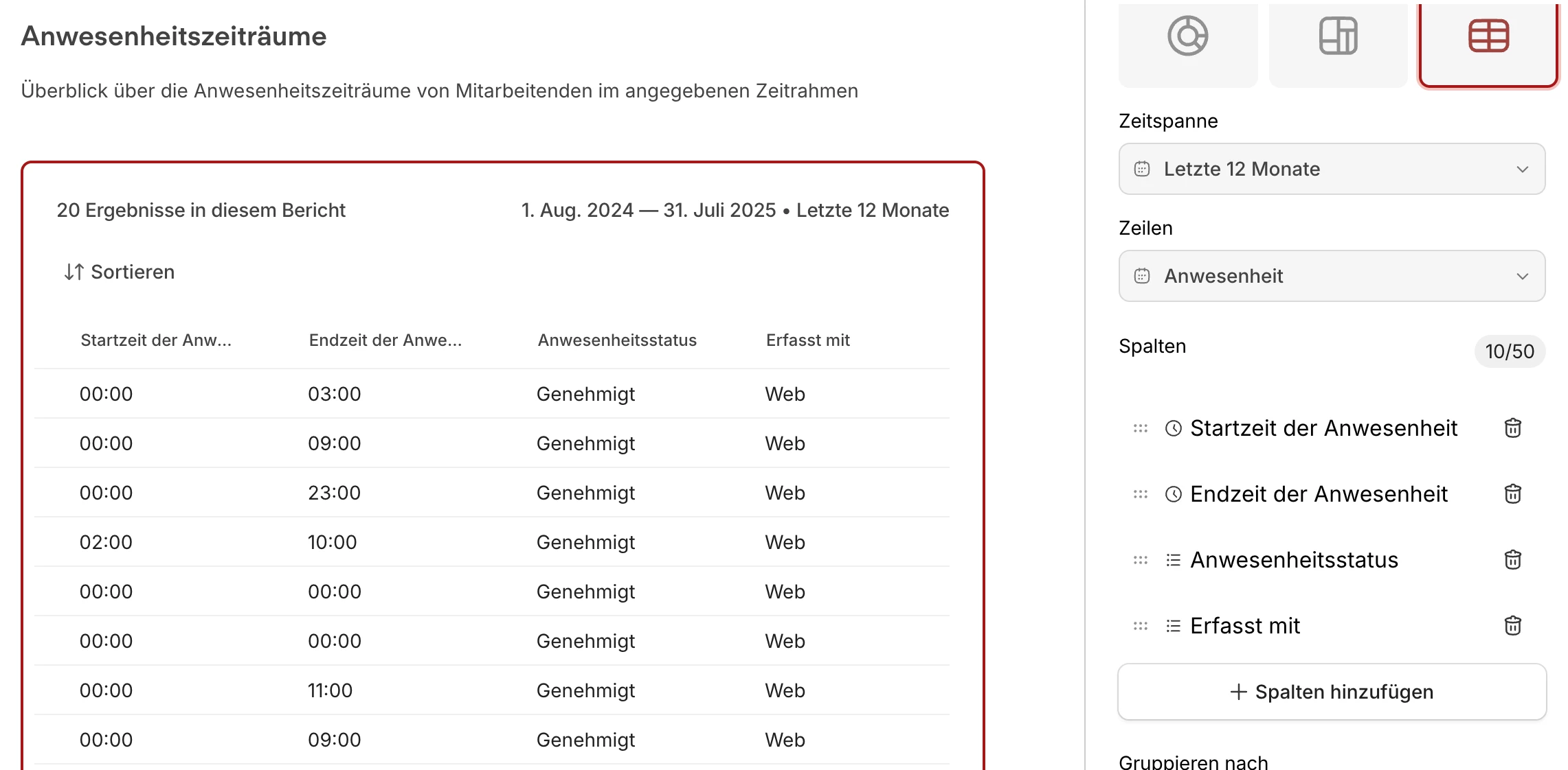 ich habe bis letzten Monat den klassischen Anwesenheitsbericht für Auswertungen über die Office / Homeoffice-Nutzung genutzt. Nun ist dieser Bericht nicht mehr sichtbar. Mit der neuen Anwesenheitsübersicht kann ich die Daten “erfasst mit” (API / Web / Mobil) nicht mehr auswerten.
