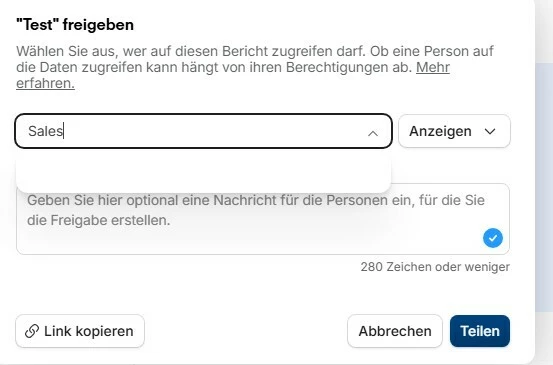 Ergänzung: Ich habe soeben noch folgenden Beitrag gefunden, in dem geschildert wurde, dass wohl noch weitere Features für das Teilen von Berichten hinzugefügt werden: