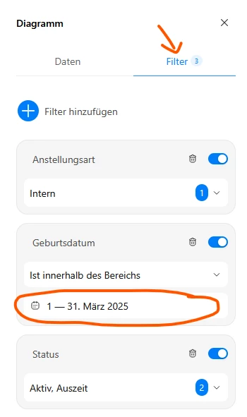 im vorgegebenen Gebursttagsbericht, hier auf Filter gehen. Da kannst du auch nur einen Monat auswählen: