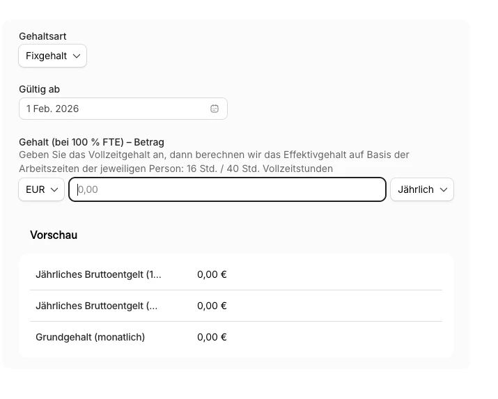 bevor ich das Feedback an Personio gebe, kurze Frage: übersehe ich es irgendwo oder ist es nicht mehr möglich ein Teilzeitgehalt einzugeben, was dann seitens Personio auf 100% gerechnet wird?