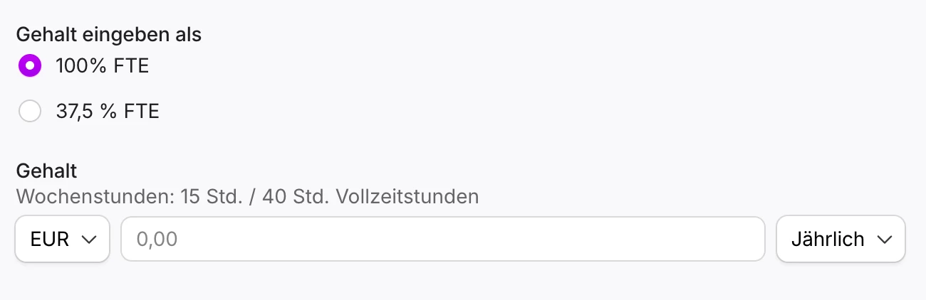 bevor ich das Feedback an Personio gebe, kurze Frage: übersehe ich es irgendwo oder ist es nicht mehr möglich ein Teilzeitgehalt einzugeben, was dann seitens Personio auf 100% gerechnet wird?