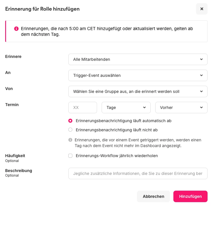 -Start/Enddatum Abwesenheit Mitarbeiter / Anstelldatum - Austrittsdatum Mitarbeiter