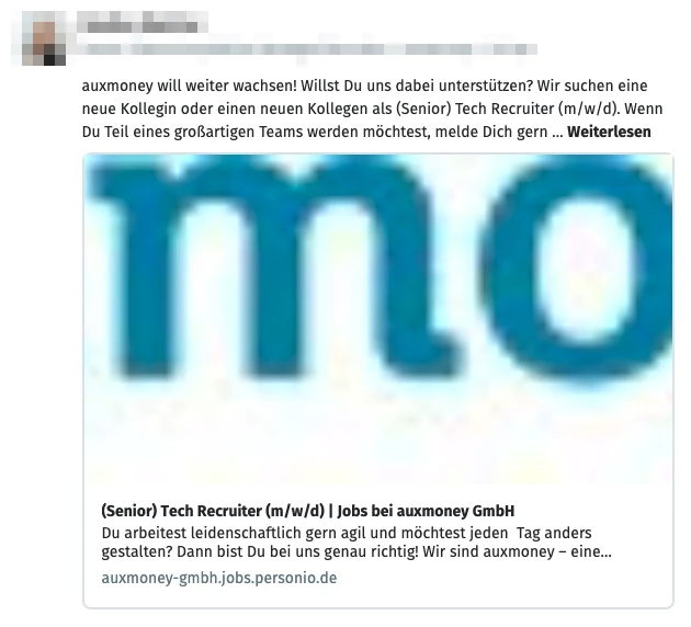 Unser Logo wird bei Stellenanzeigen, die wir teilen, nicht richtig dargestellt. Die Screenshots zeigen es am besten.