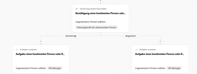 Als wir angefangen haben, die “richtigen” Genehmigungsprozesse in die Workflow Automatisierungen umzuziehen (woran wir noch sind), haben wir erlebt, wie verwirrend die beiden Varianten nebeneinander waren und Anwendende in der Regel eh die richtigen Genehmigungsprozesse wollten. Also wurde dieses vorherige “Genehmigungsanfrage” herausgenommen. Der Hauptfokus unseres Produkt-Teams liegt jetzt daran, möglichst vielschichtige Genehmigungsvarianten zu ermöglichen sowie eine gute Variante zu finden, die Abwesenheitsgenehmigungen gut zu migrieren.
