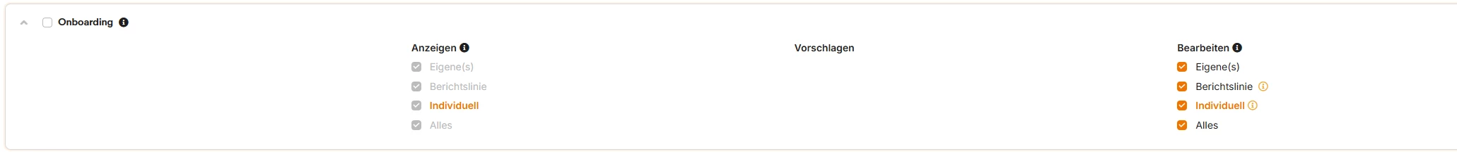 Einstellungen > Mitarbeitendenrollen > Eine neue Rolle anlegen, bspw. “Verwaltung On-/ Offboarding Vorlagen” > Berechtigungen > Konfigurationen > bei Kontokonfiguration den Haken bei On-/Offboarding setzen