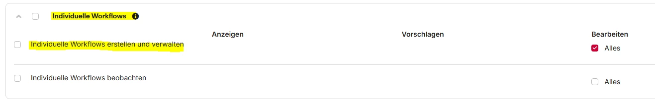 Ich würde dann eine Mitarbeitendenrolle “Workflow Bearbeitung” erstellen und nur diese Einstellungen zusätzlich setzen. Dann kannst du hier gezielt die Leute hinzufügen und an Hand einer Person aus der Gruppe testen ob du die Workflows bearbeiten kannst.