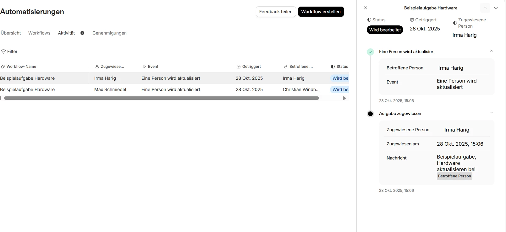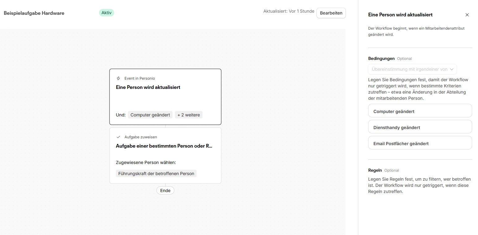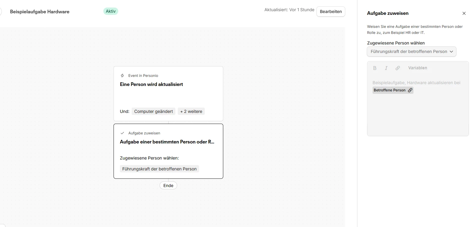 Damit ich nicht manuell erinnern muss, will ich einen Workflow einrichten: bei einer Änderungen des Typ-Attributs wird eine Aufgabe erstellt.