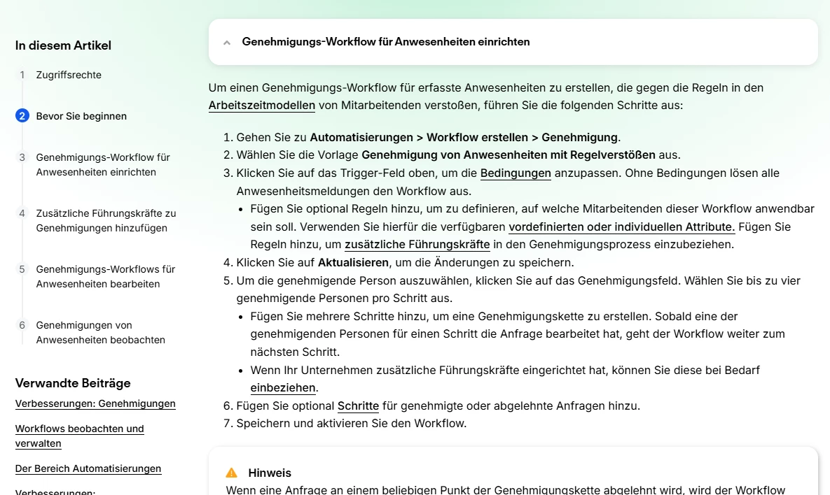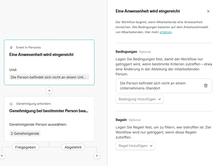 Genehmigungen von Anwesenheiten in Automatisierungen einrichten – Personio
