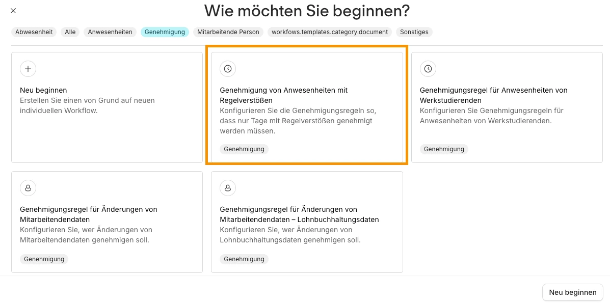 ich würde gerne diesen Workflow bei uns einrichten, jedoch gibt es bei mir die unter 2. genannte Vorlage überhaupt nicht.