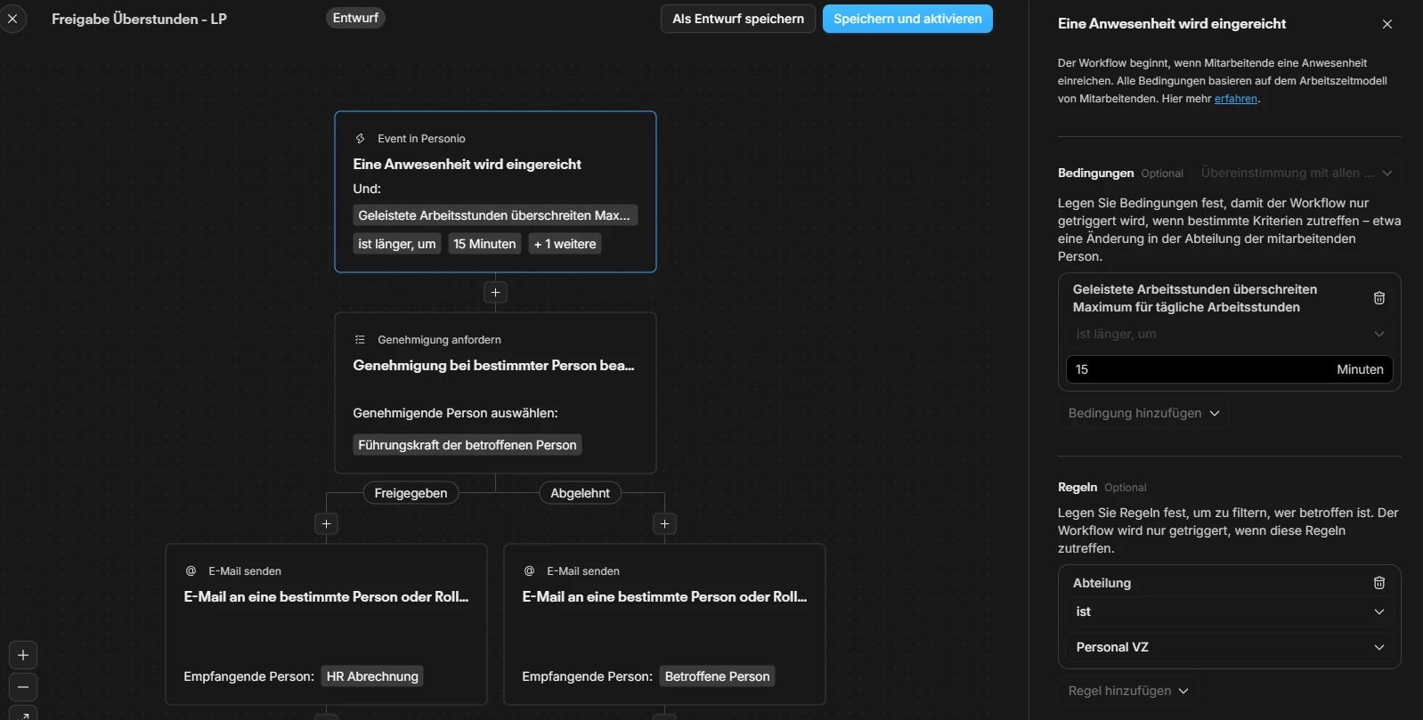 Einige unserer MA erfassen Ihre Arbeitszeit und machen auch Überstunden. Hierfür habe ich einen Workflow erstellt, damit die Führungskraft entsprechend informiert und auch diese genehmigen kann oder sich dagegen entscheidet. Lt. personio Support habe ich den Workflow richtig generiert. Da ich als Admin nicht davon betroffen bin, kann ich meine eigenen Stunden munter eintragen (ohne Genehmigungsworkflow - aber anderes Thema). Ich melde mich also bei einem anderen MA an und versuche die Stunden testweise einzutragen. Immer wird der Workflow nicht getriggert. Nun habe ich mich durch das Helpcenter gewurschtelt und habe gefunden, dass ein Genehmigungsworkflow nur angesteuert wird, wenn in den Berechtigungen der Mitarbeiterrollen bei den Anwesenheiten ein Vorschlagsrecht hinterlegt ist. Hier habe ich einen Bug! Die Mitarbeitenden sollen natürlich Ihre Überstunden in Freizeit selbst ausgleichen (inkl. Genehmigungsworkflow - welcher auf funktioniert).