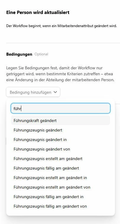 und experimentieren mit den ersten komplexerern Workflows. Bei uns müssen alle Mitarbeiter ein Führungszeugnis abgeben, das alle 5 Jahre erneuert werden muss.