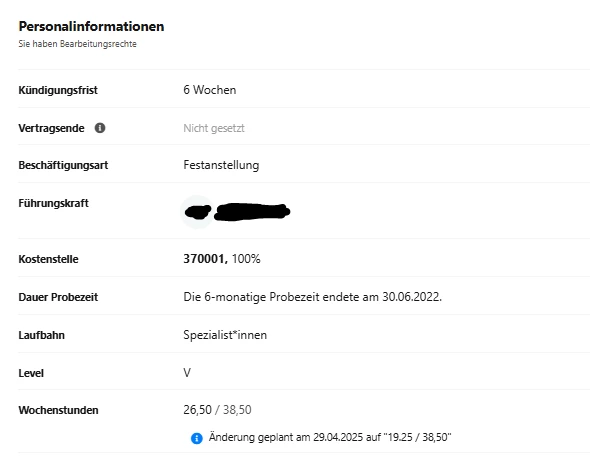 kann mir jemand auf Anhieb sagen, ob die bereits eingetragenen künftigen Änderungen, wie hier die Arbeitszeit, eine reine Admin-Ansicht ist, oder ob die Führungskräfte über die Rollen die Änderungen ebenfalls einsehen können.