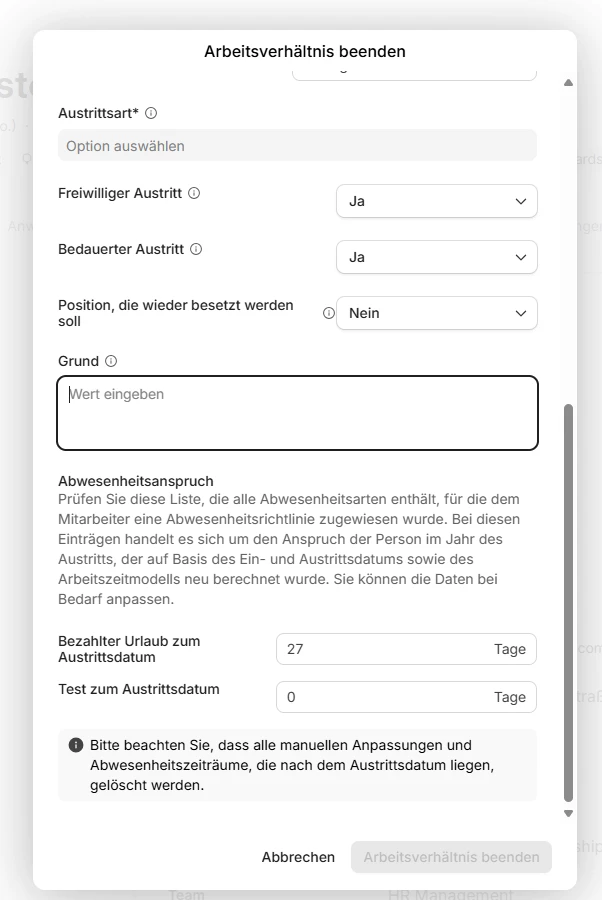 ich habe seit einiger Zeit ein Problem mit der Funktion „Arbeitsverhältnis beenden“ in Personio.