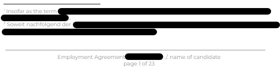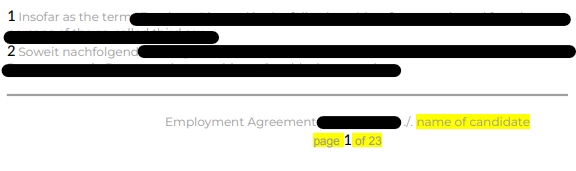Wir verwenden in der Fußzeile unserer Dokumente automatische Seitenzahlen. Sobald wir die Vorlage in Personio hochladen wird jedoch die Seitenzahl der aktuellen Seite plötzlich in einer anderen Schriftart und Schriftgröße angezeigt (siehe Screenshot 1). Im Screenshot 1 sieht man auch, dass hochgestellte Zahlen von Querverweisen/Referenzen, die in der Fußzeile erscheinen, umformatiert werden. Eigentlich sollte aber die Formatierung so aussehen wie in Screenshot 2, weil wir auch so die Vorlage hochladen.