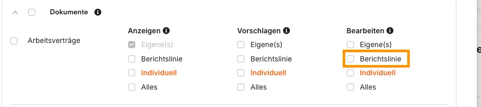 Ich möchte die Berechtigungen für Dokumente so einstellen, dass Führungskräfte für bestimmte Dokumente Zugriffsrechte haben, uns zwar nur für die der Mitarbeiter, die ihnen unterstellt sind.