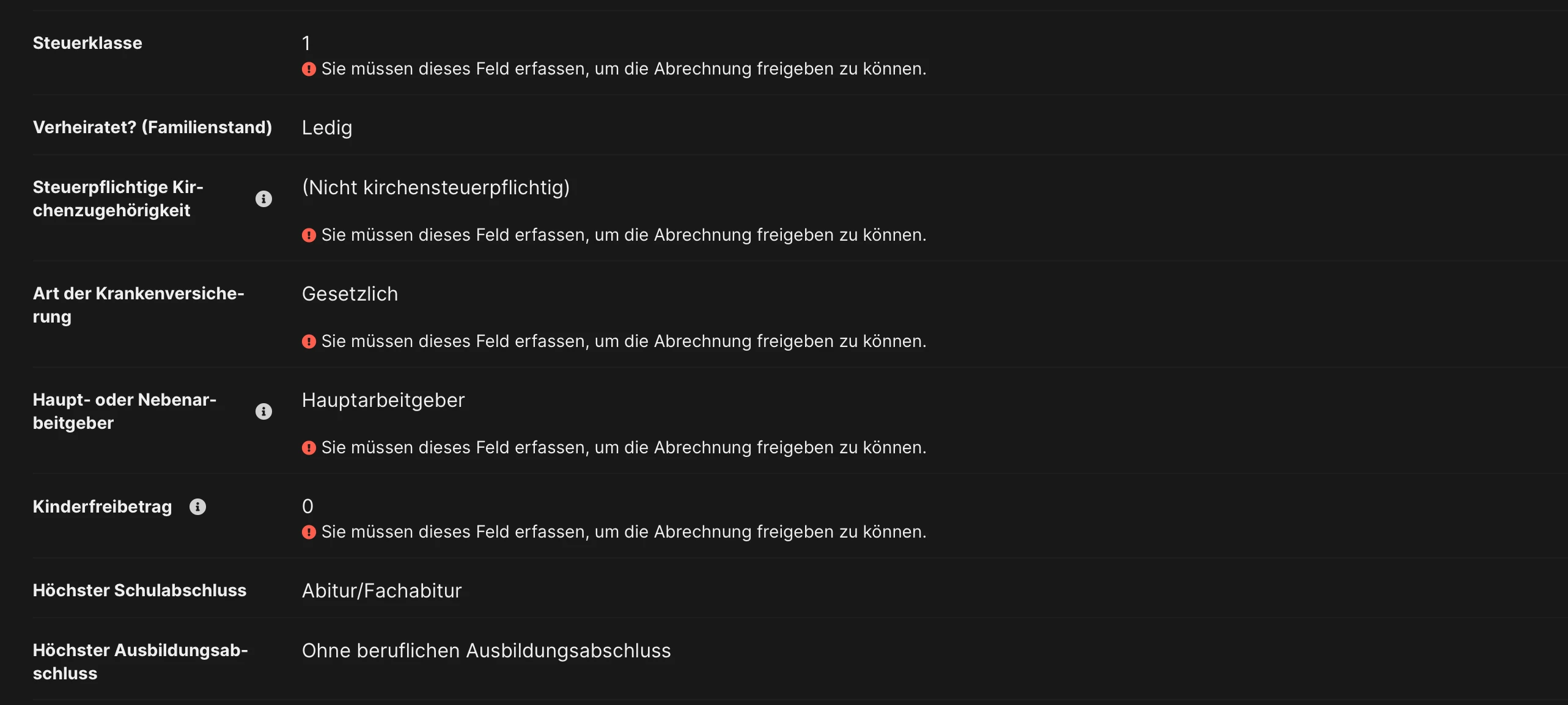 Bei uns tauchen bei allen Mitarbeitern Fehlermeldungen auf obwohl die Felder ausgefüllt sind.
