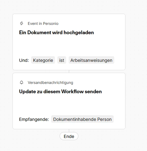ich habe Workflows erstellt, bei dem MItarbeitende gezielt eine Info bekommen, wenn ein Dokument in den von mir erstellten Dokumentenkategorien “Stundenzettel” oder “Arbeitsanweisungen” hochgelaqden wurde. Das funktioniert.
