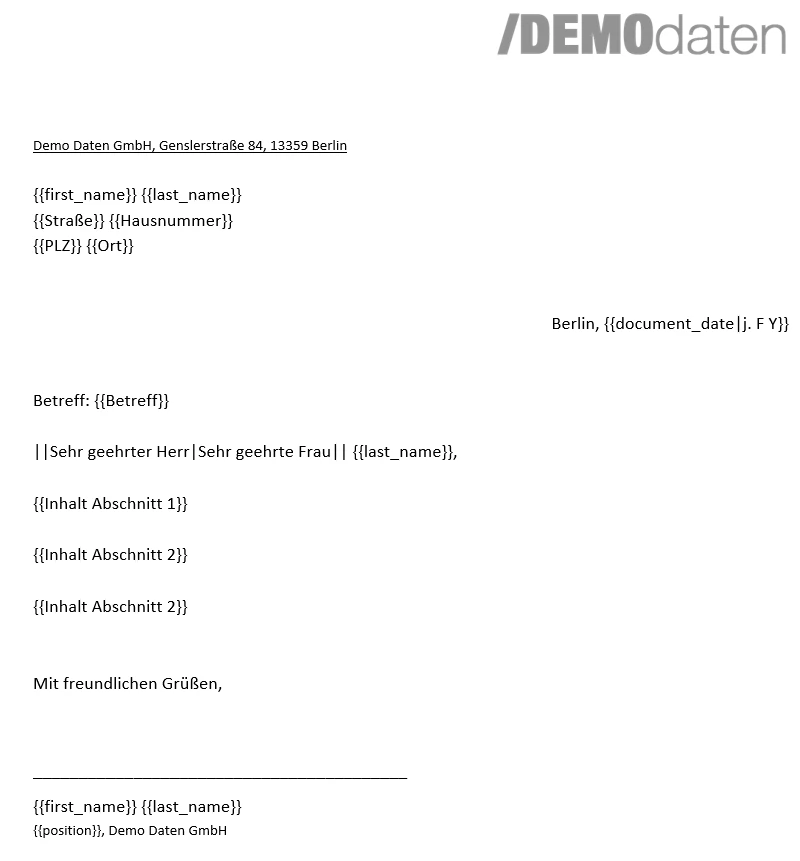 Die Platzhalter für den Namen in der Adresszeile und in dem Unterschriftenfeld sind in dem Muster von Personio identisch, das kann ja so nicht funktionieren. Wie setze ich hier den richtigen Platzhalter für den Namen und die Funktion des Vorgesetzten, bzw. für die verschiedenen Führungsebenen Teamleitung/Bereichsleitung/Vorstand?