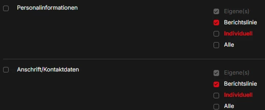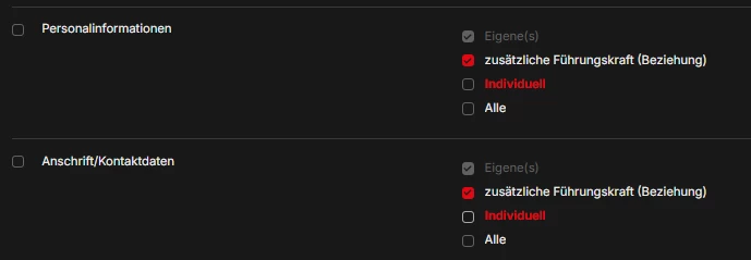 Das bedeutet dann auch im Umkehrschluss für uns: unsere Führungskräfte und zusätzlichen Führungskräfte haben identische Berechtigungen - Änderungen müssen dann immer in beiden Rollen vorgenommen werden.