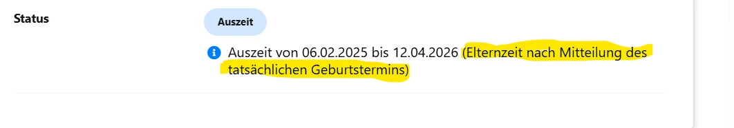 - wenn wir eine Auszeit terminiert haben (gelb ist der selbst erfasste Kommentar beim Anlegen der Auszeit)