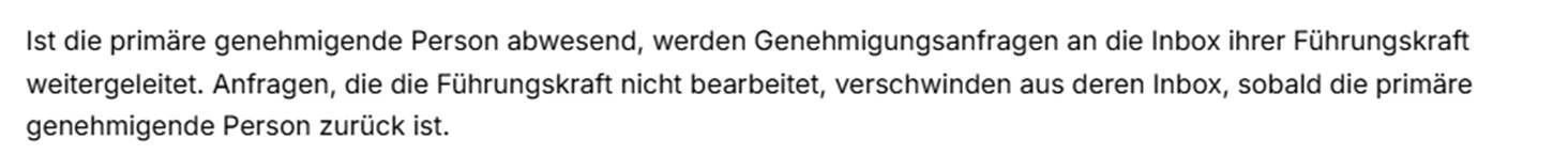 Das funktioniert nicht. Die Genehmigungsanfrage ist immer noch in der Inbox der Führungskraft obwohl die primär genehmigende Person wieder da sind. Die primär genehmigende Person sieht diese Anfrage gar nicht. Was mache ich falsch?