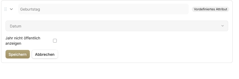 Bei uns habe ich das Attribut in den Bereich “Öffentliches Profil” gezogen und die Anzeige der Jahreszahl deaktiviert.