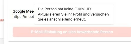 Die Kollegin ist regulär über ihre Firmen-Mailadresse in Personio angemeldet, loggt sich auch über diese täglich ein - nur dieser Nachrichtenversand bei Recruiting-Interviews klappt nicht.