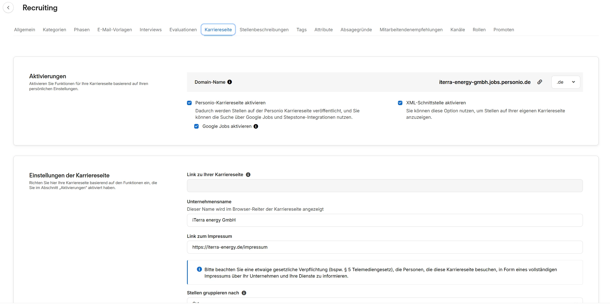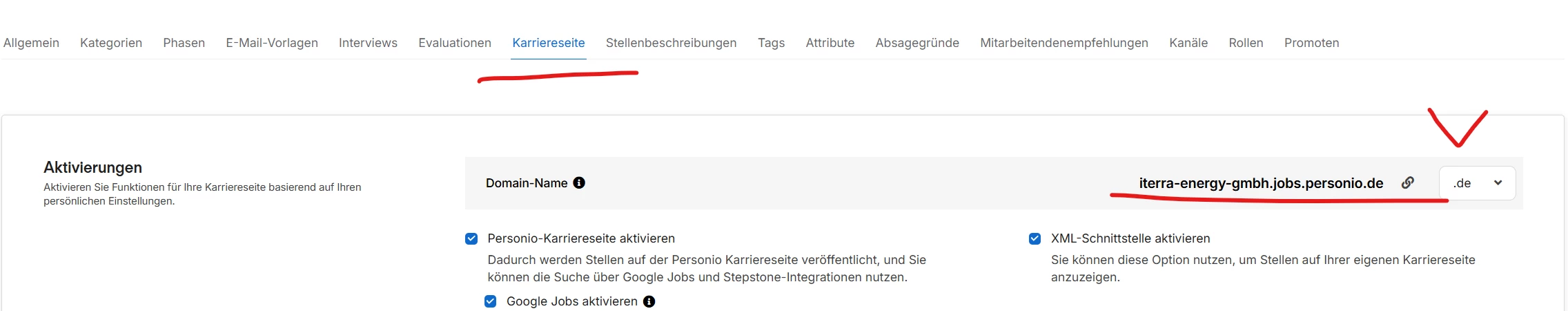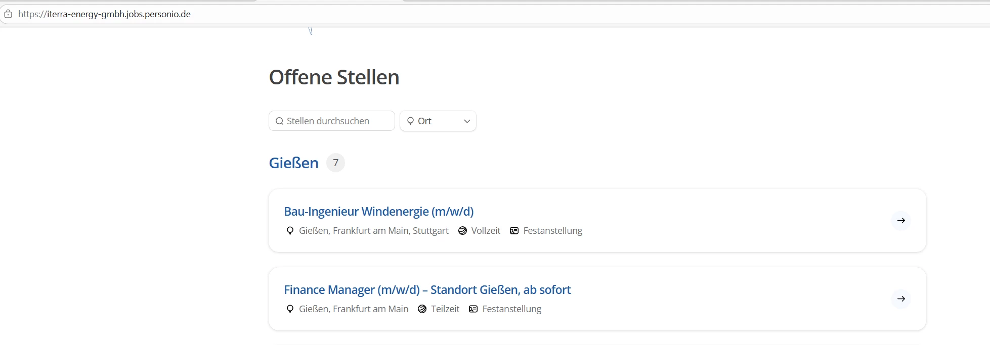 Über den Link in Personio (Recruiting → Karriereseite → Domain Name) wird die aktuelle Liste der Stellenanzeigen korrekt angezeigt. Wenn wir jedoch direkt auf unsere Homepage gehen, ist die Liste der Stellenanzeigen nicht aktuell.