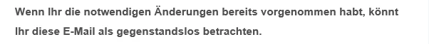 Jetzt bekommen wir seit ein paar Tagen wieder In-App-Benachrichtigungen darüber und heute nun auch wieder eine Mail. In der Mail steht ganz charmant und unverbindlich folgender Satz: