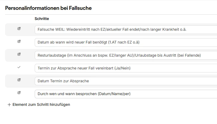aktuell bin ich dabei einen Ablauf für Mitarbeitende die nach zb. der Elternzeit wieder ins Unternehmen eintreten, ein sogenanntes Reboarding, zu erstellen.